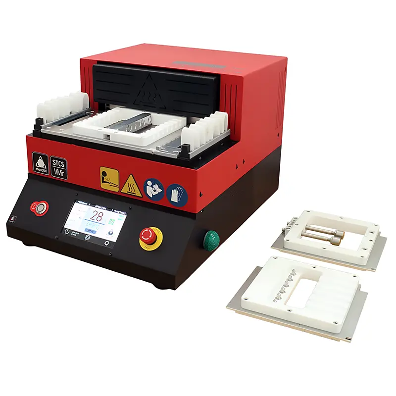 Hot-Air Shrinking Systems can be individually programed by means of a controller. Temperature, time as well as individual programs can be easily regulated. Furthermore with individually adjusted shrinking chambers several harnesses can be processed at once. With this an ongoing good quality can be achieved.